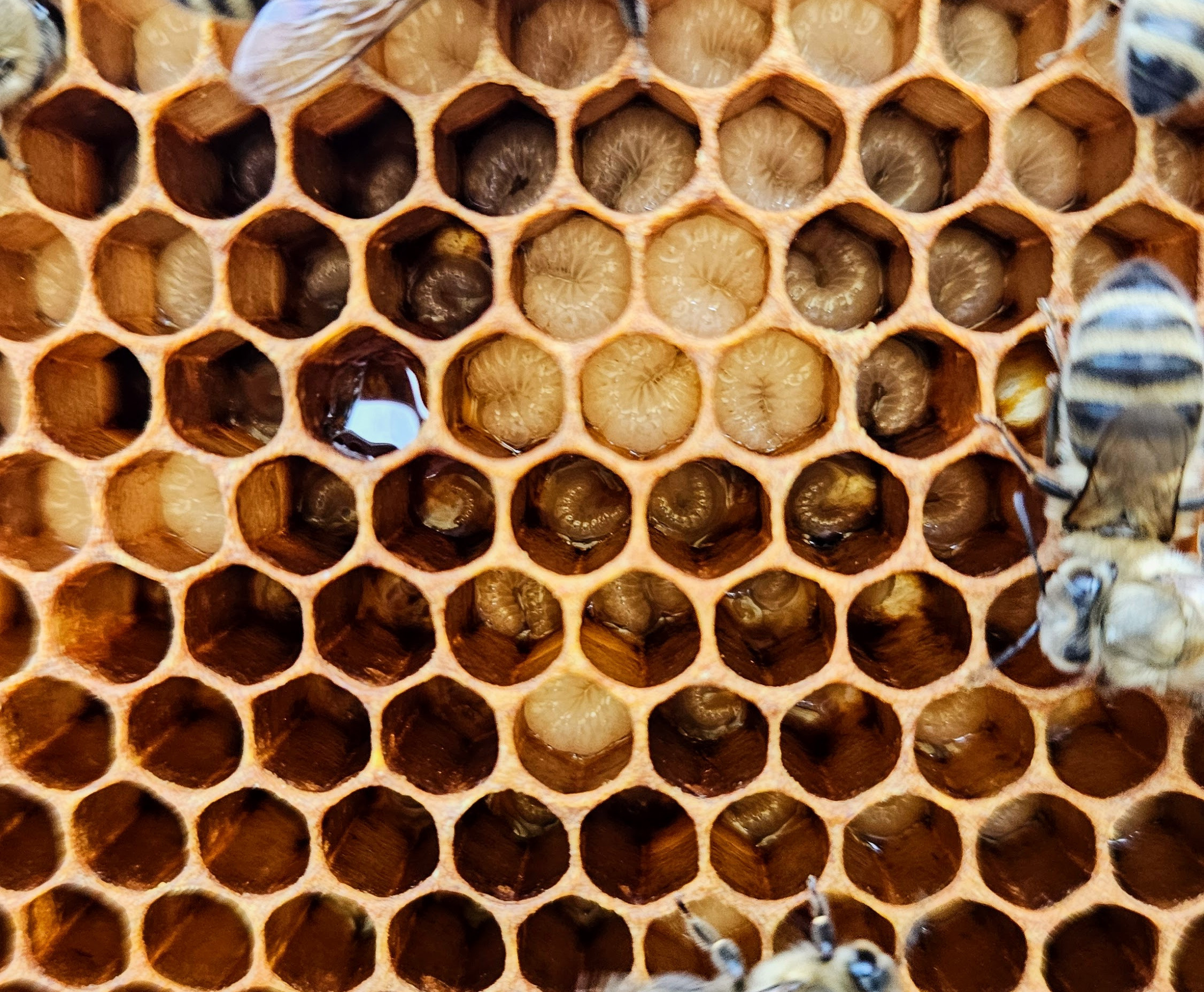 Jedes Volk der europäischen Honigbiene ist mit der Varroa-Milbe befallen. Dieser Parasit kommt ursprünglich aus Asien und ist in den 1980ern nach Österreich eingeschleppt worden. Die Varroa-Milbe setzt sich auf Larven und auch erwachsene Bienen und saugt sie bei lebendigem Leib aus. Der eigentliche Wirt, die östliche Honigbiene (Apis cerana) ist in der Lage sich selbst gegen die Varroa-Milbe zu wehren, die europäische Bien (Apis mellifera) ist jedoch nicht dagegen gewappnet und wir müssen uns als Imker um die Völker kümmern. Dafür behandeln wir die Stöcke mit Ameisensäure beziehungsweise Oxalsäure. Die Bienen überleben diese Behandlung, die Milben sind jedoch anfällig für die Säuren. Diese Behandlungen finden natürlich nur statt, wenn es notwendig ist, und wenn es dadurch nicht zu einer Kontamination von Honig oder Pollen kommen kann.